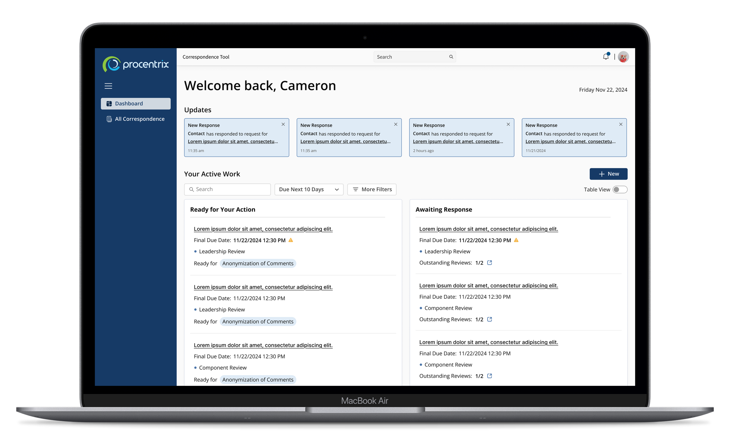 Dashboard Optimization & Streamlined Correspondence