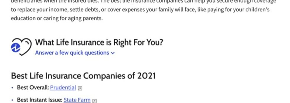 Locate the box where is says “Compare Best Life Insurance“. What do you think that is. What do you think would happen if you clicked on it?